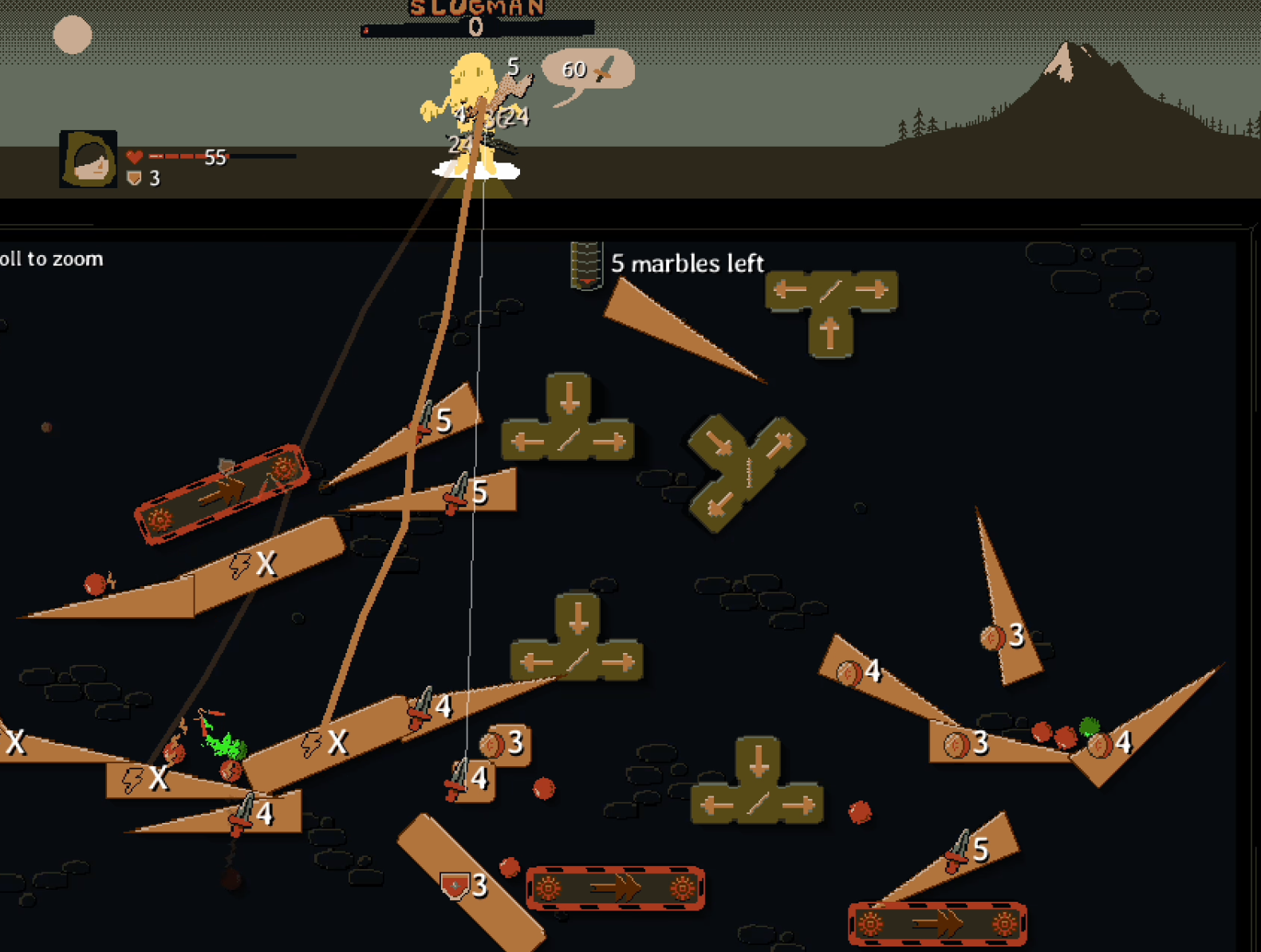 - Hitting ability blocks with your marbles can attack, defend, and collect you gold!