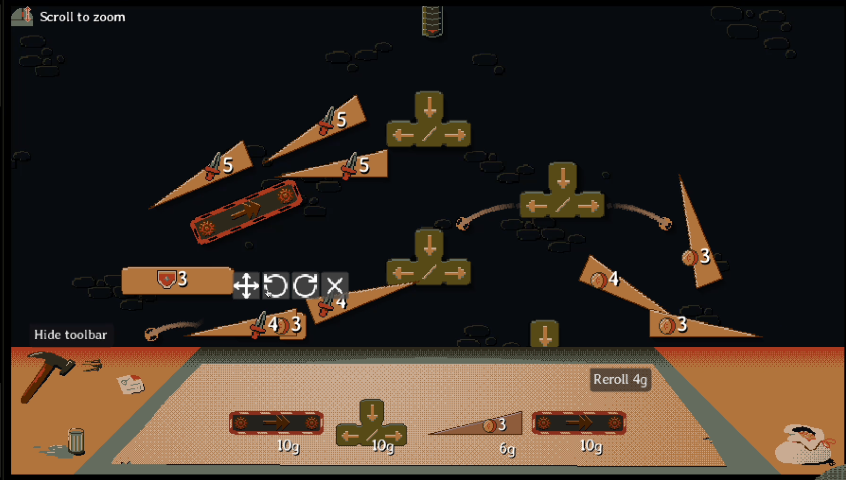 Build a larger and larger machine to survive. Spend gold to buy blocks with powerful abilities and defeat enemies to collect rare relics!